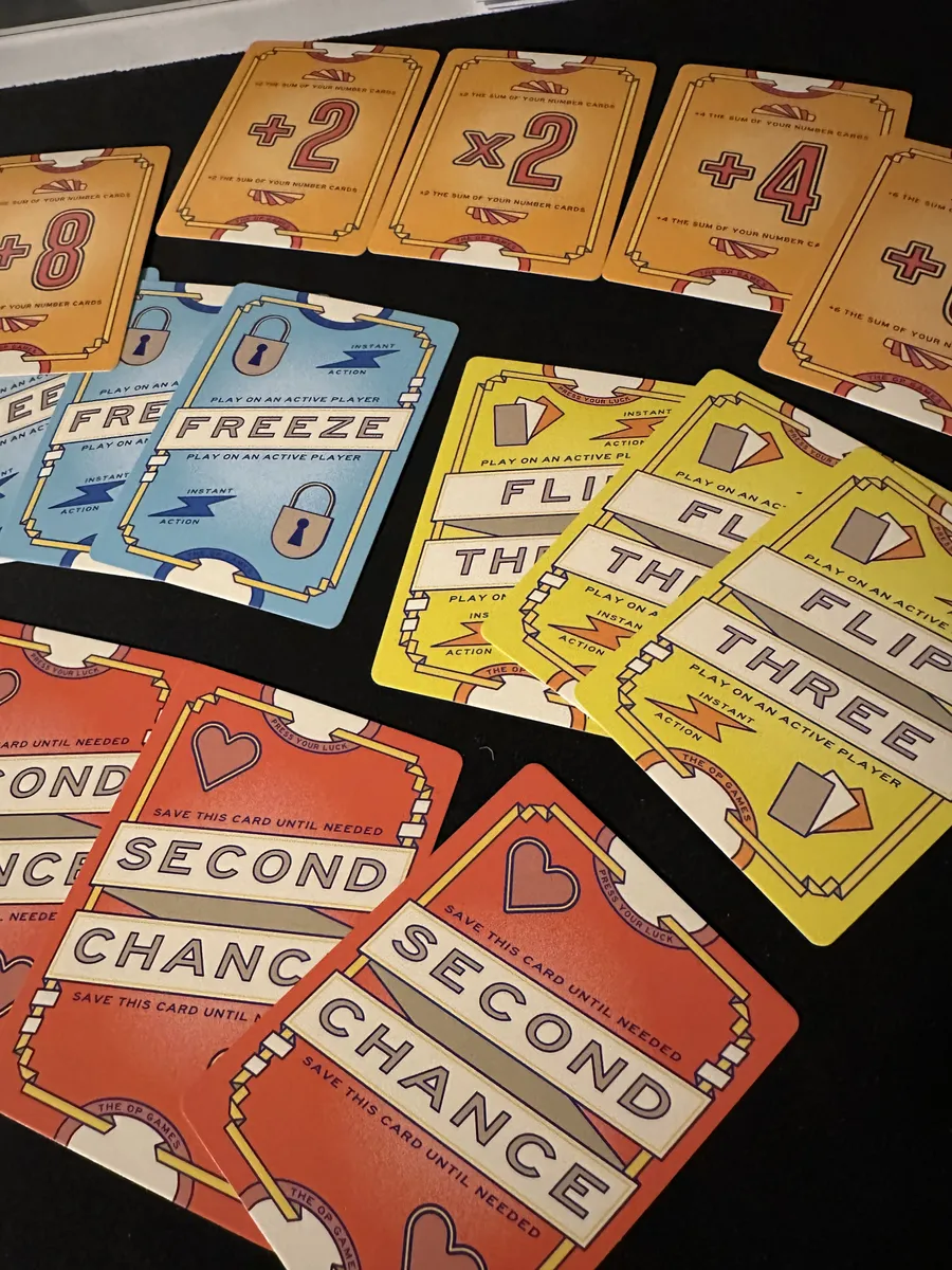 自分は”あがり”状態となり、以降の手番は行わない。 - カードの中には、特定のプレイヤーを即時”あがり”状態にする「フリーズ」や、1回だけダブっても大丈夫な「セカンドチャンス」など様々なアクションカードも存在する。