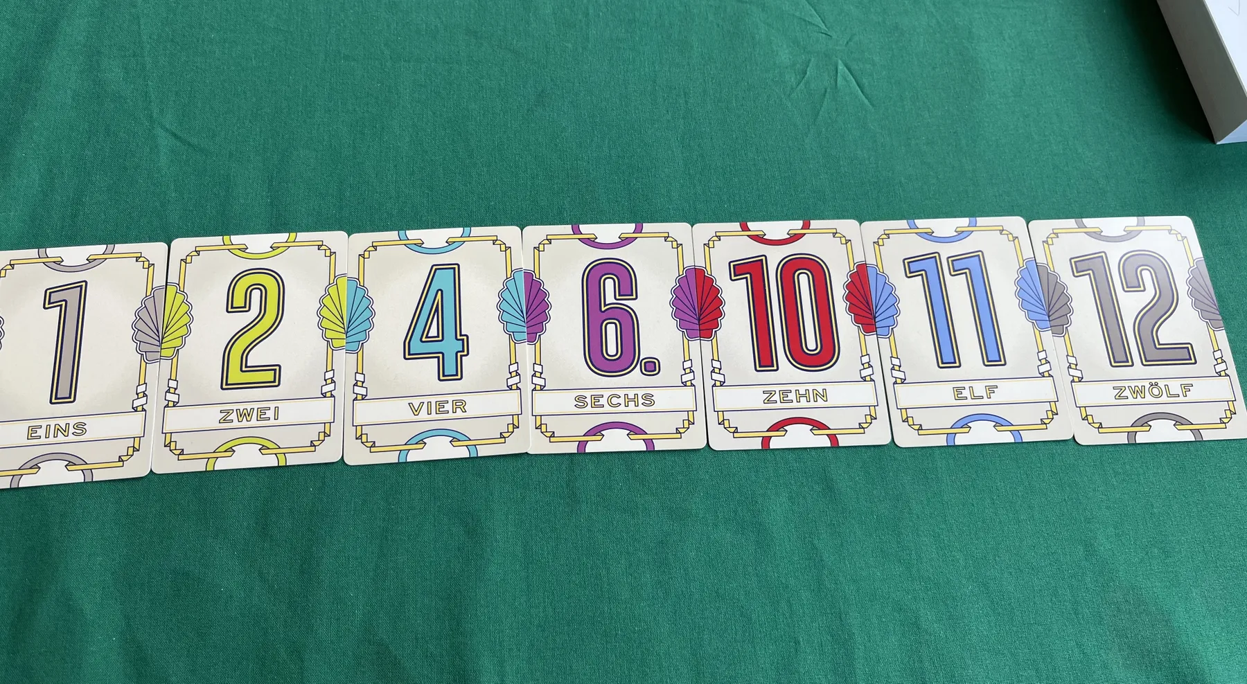 獲得したカードは表にして手元に並べていく。 - 中心となるカードが1~12の数字カード。