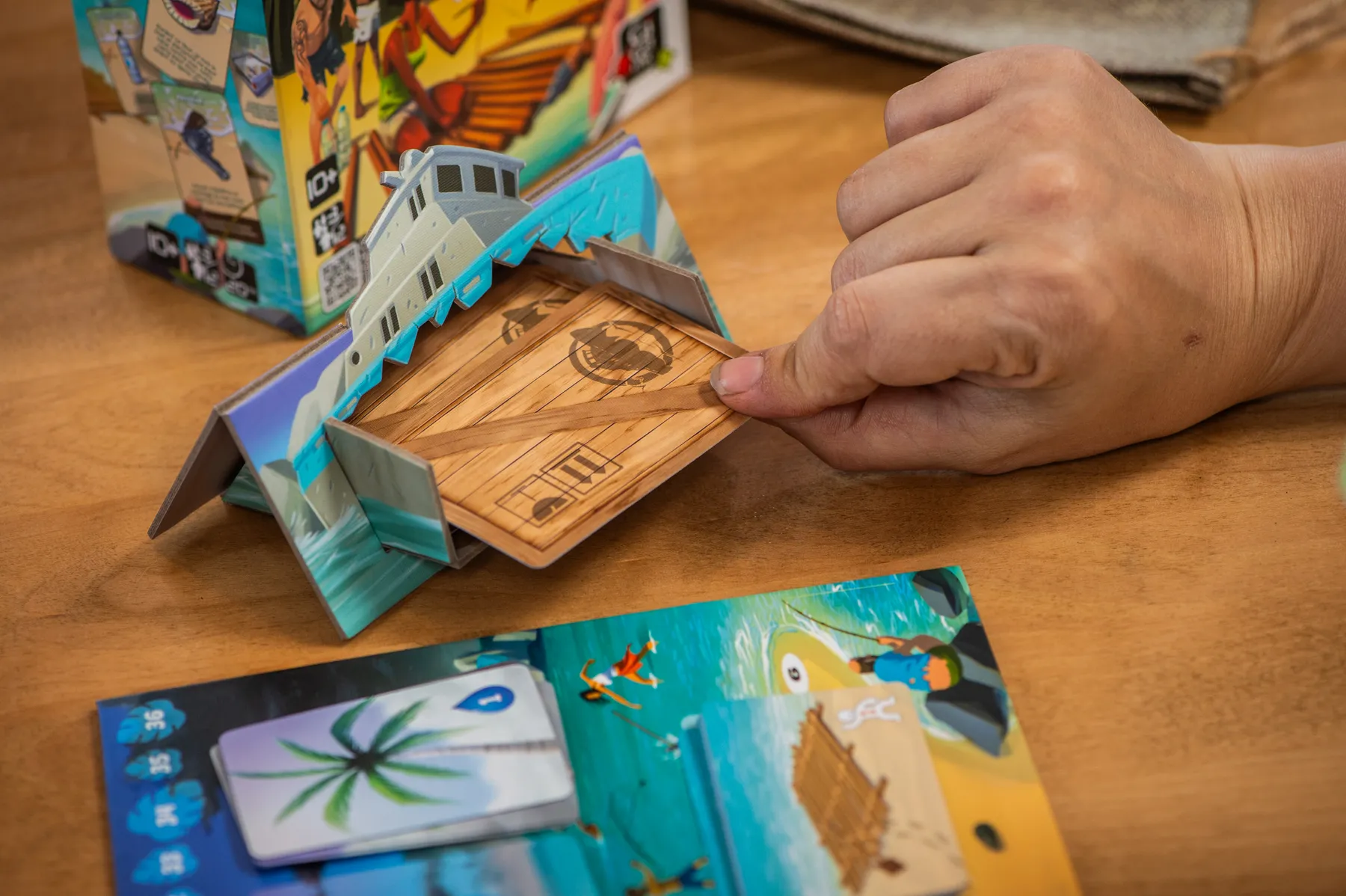 • 手番では「魚を釣って食料を確保する」「水を汲みにいく」「イカダ用の木材を集める」といったアクションから1つを実行。