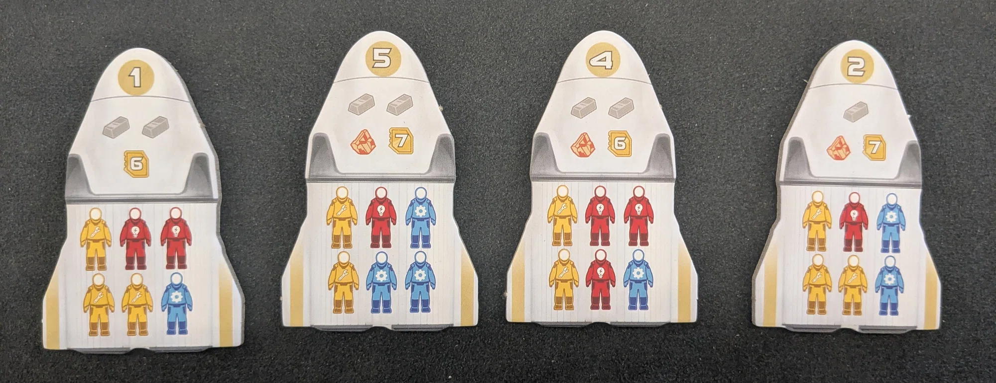 最初の「シャトルフェイズ」では、プレイヤー数+1個あるロケットの中から1つを選択。