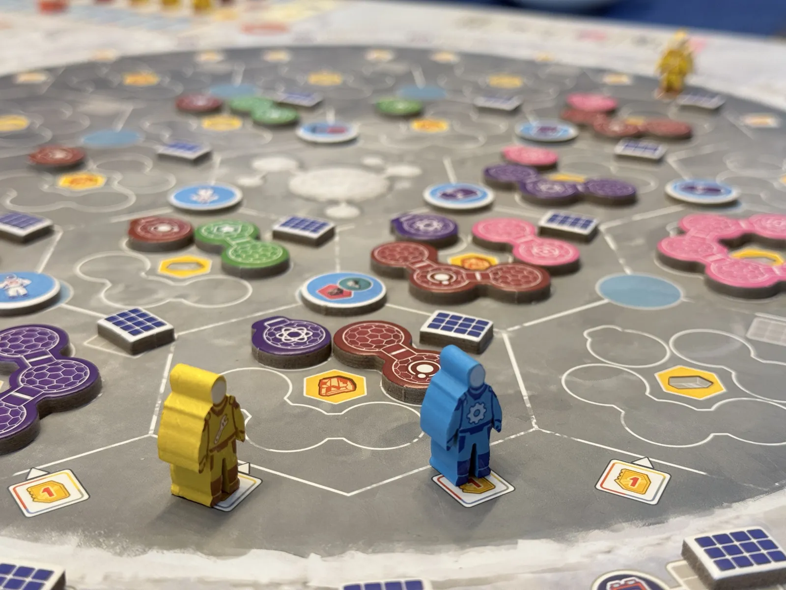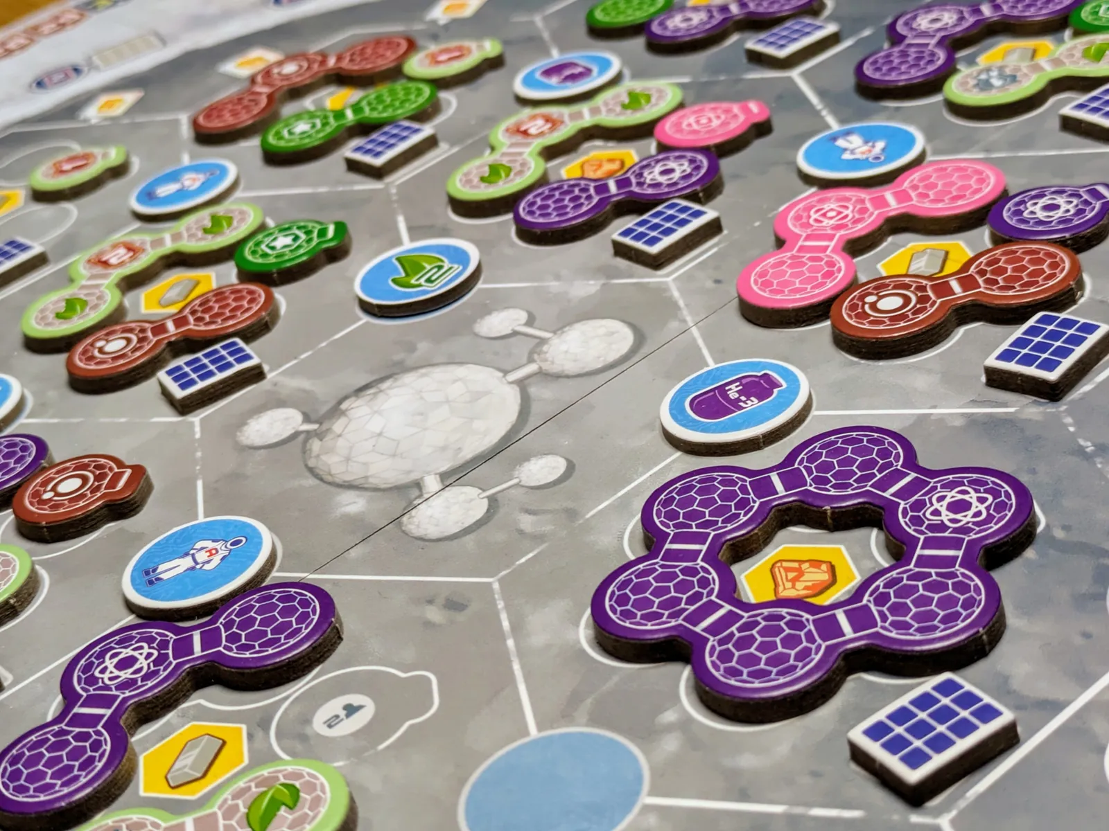 月面開拓をテーマに、シンプルなワーカープレイスメントの上に建設や能力獲得と一貫して素晴らしい調整。コマも建物もかわいくて、ちゃんと華があるゲーム。ロピアーノすげえ。