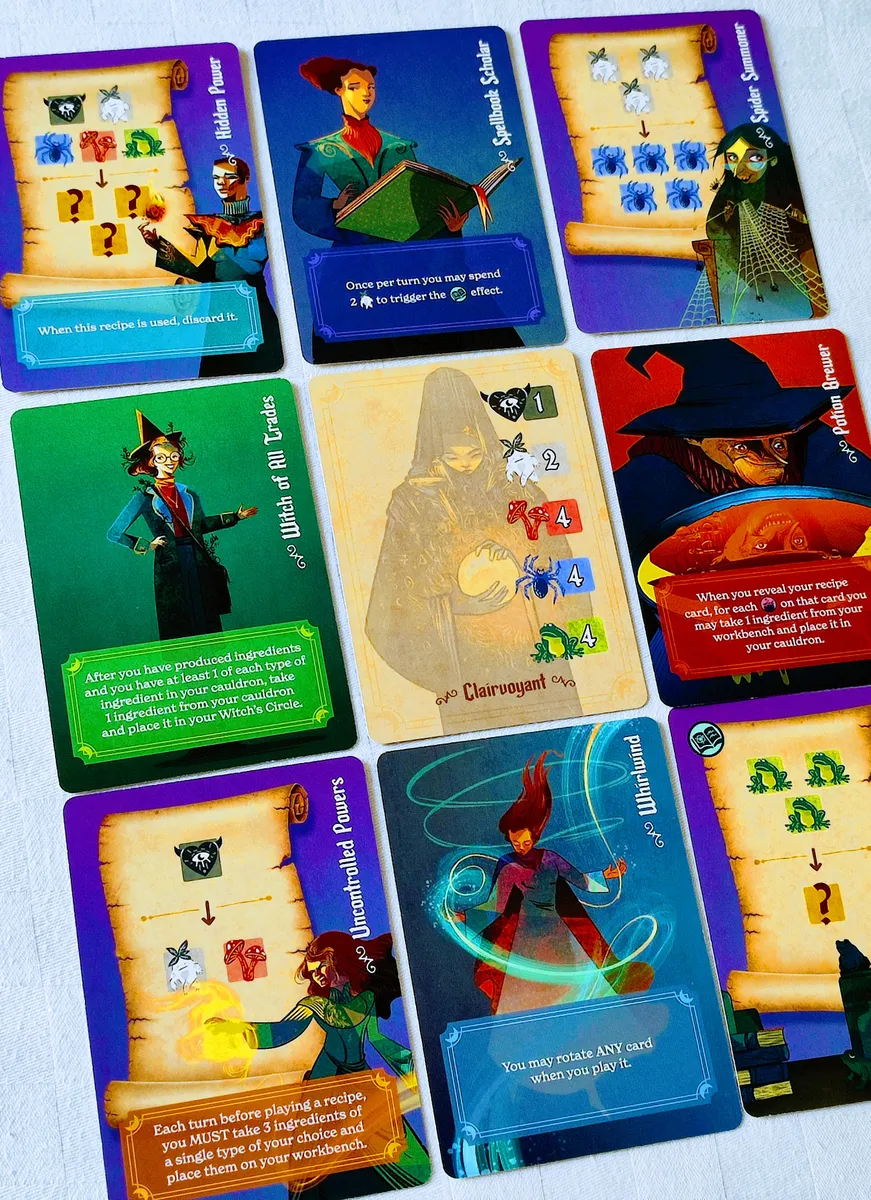 ゲーム開始時、魔女(プレイヤーキャラ)を選択。魔女ごとに様々な個人能力を持つ。(引用:BoardGameGeek